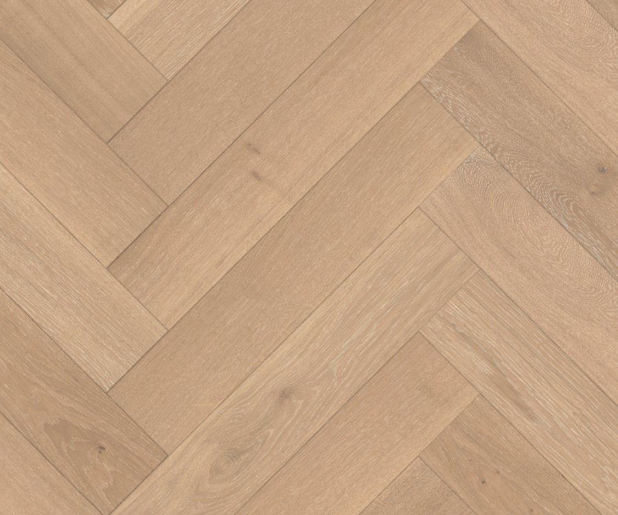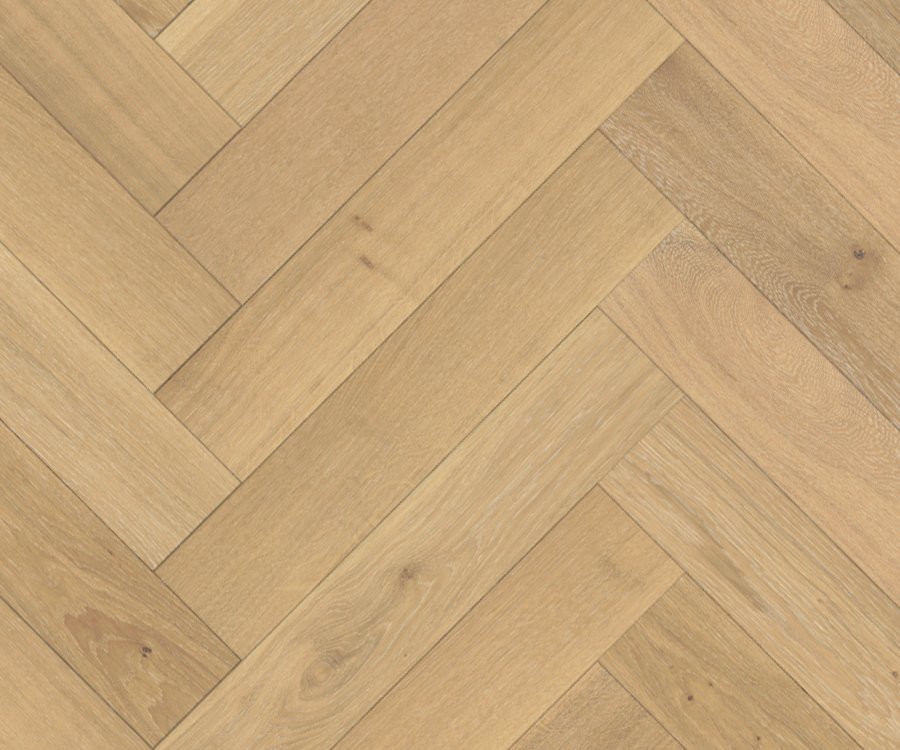 Featuring sawn faces of select, wire brushed French Oak hardwoods in a stable engineered construction, available in beautiful herringbone style, with beveled edges and ends, and a commercial UV finish.